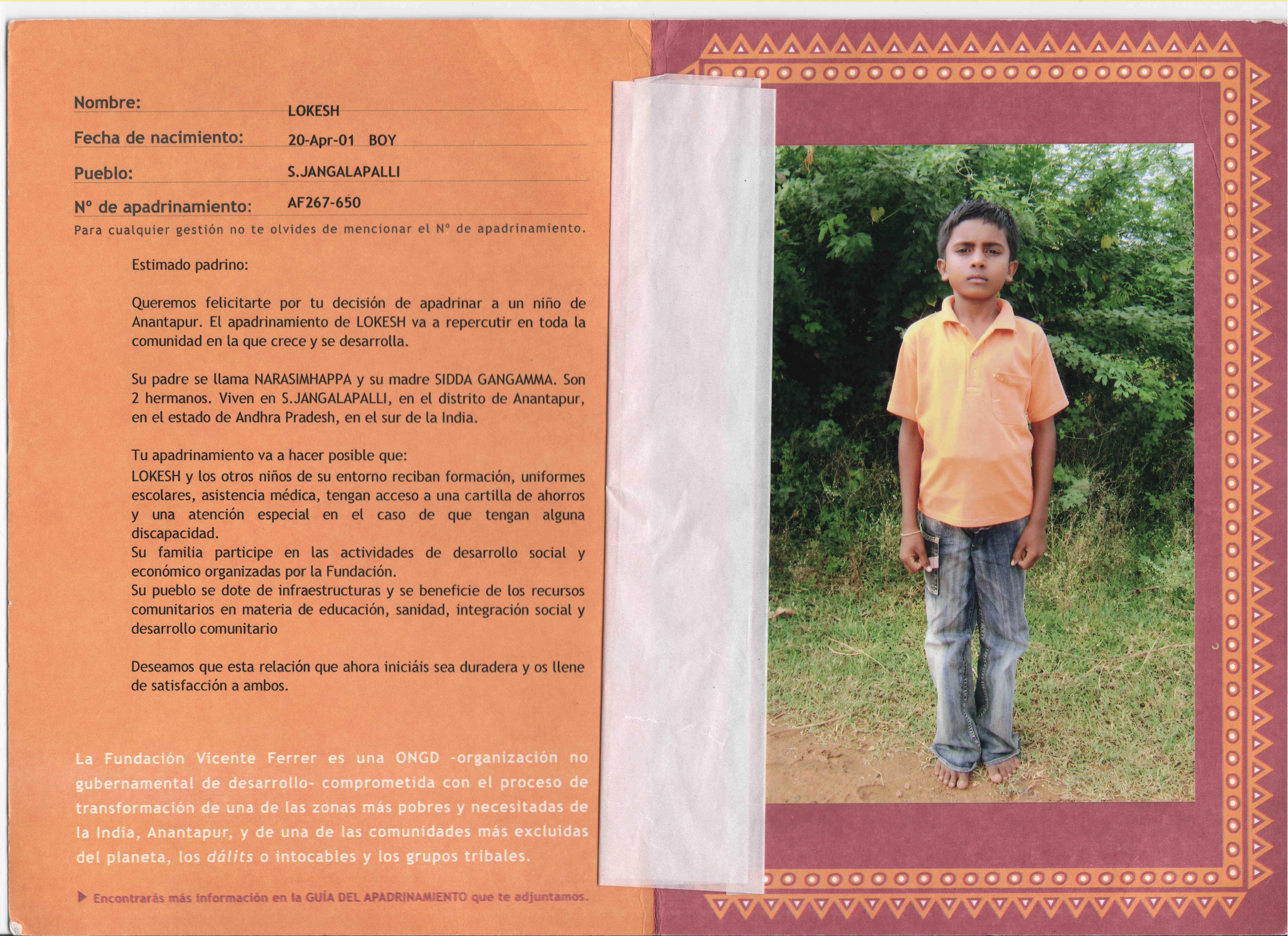 Temos apadrinados un neno e unha nena en Anatapur da Fundación Vicente Ferrer. Ademais, dúas veces ao ano, enviámoslles varios paquetes con diverso